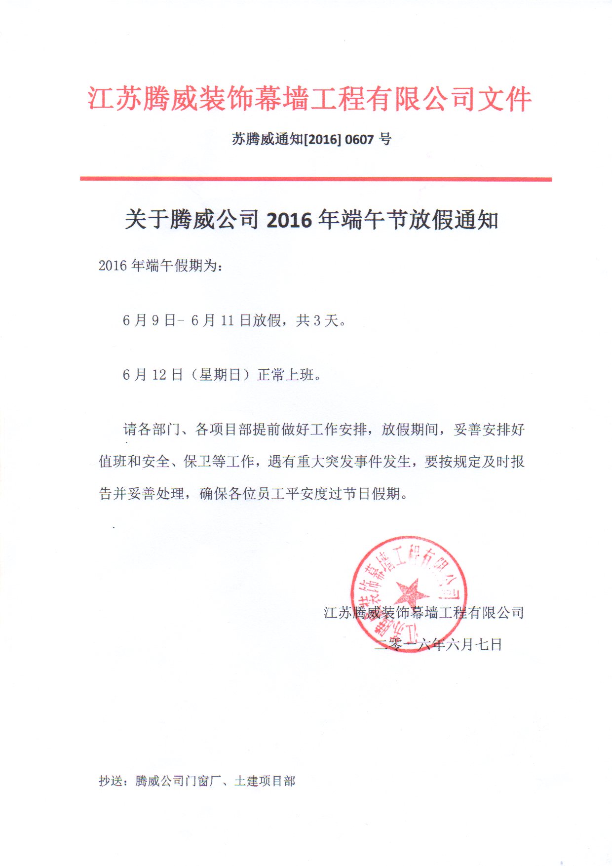 關于2016年端午放假通知